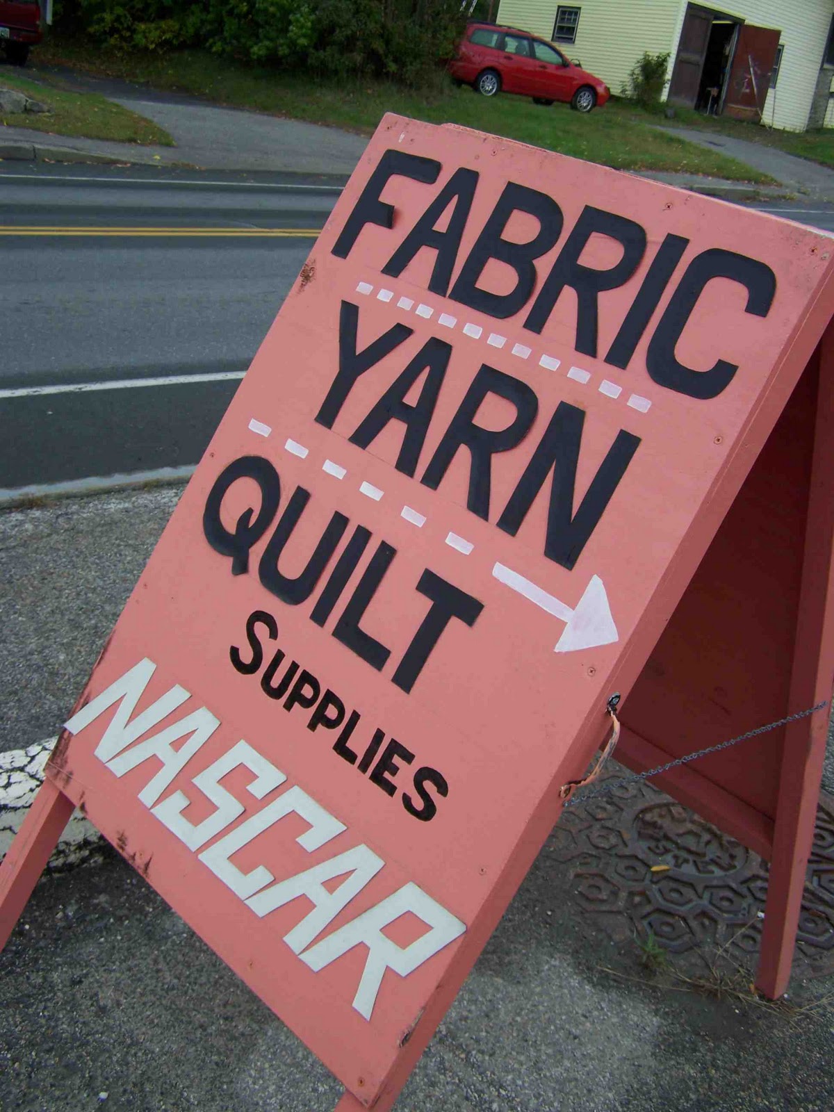 As I got to know my relatives a bit more, it became more and more apparent to me that crafting seems to be in the bloodline. Two of the aunts that I stayed with are pretty avid sewers. I visited several small fabric and craft stores with them. I always love a fabric store, but I mustered all that I had to refrain from purchasing any extra fabric, after all, I was participating in Stashbusting September. The picture above is taken outside a little shop in Littleton New Hampshire. I love that the owner made it into a fabric/Nascar store. I can't quite figure out the logic behind it, but it made me smile.