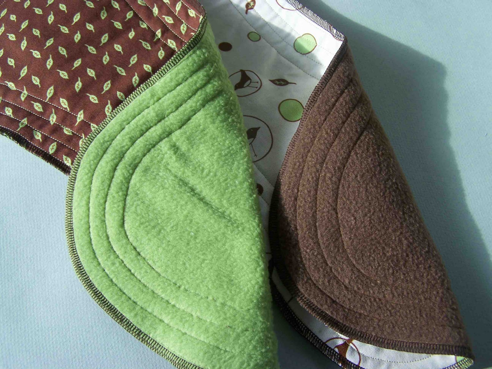 I made up a set of four burp clothes for my Sister- in-Law's baby shower last weekend. Just recently I saw some simple burp clothes that were backed in fleece. I'd never seen that before, but I love the added cushion that the fleece gives to the burp cloth. I, myself, have rather boney shoulders. I think that every newborn baby deserves a nice cushy shoulder to rest their head on.