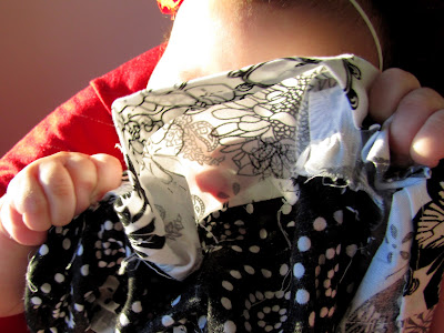 For Hip for the Holidays, I'm going to show you a holiday dress I made for my baby.  I used Simplicity pattern 5695, but instead of making it out of one piece of fabric, I used several in different prints of black and white.